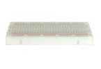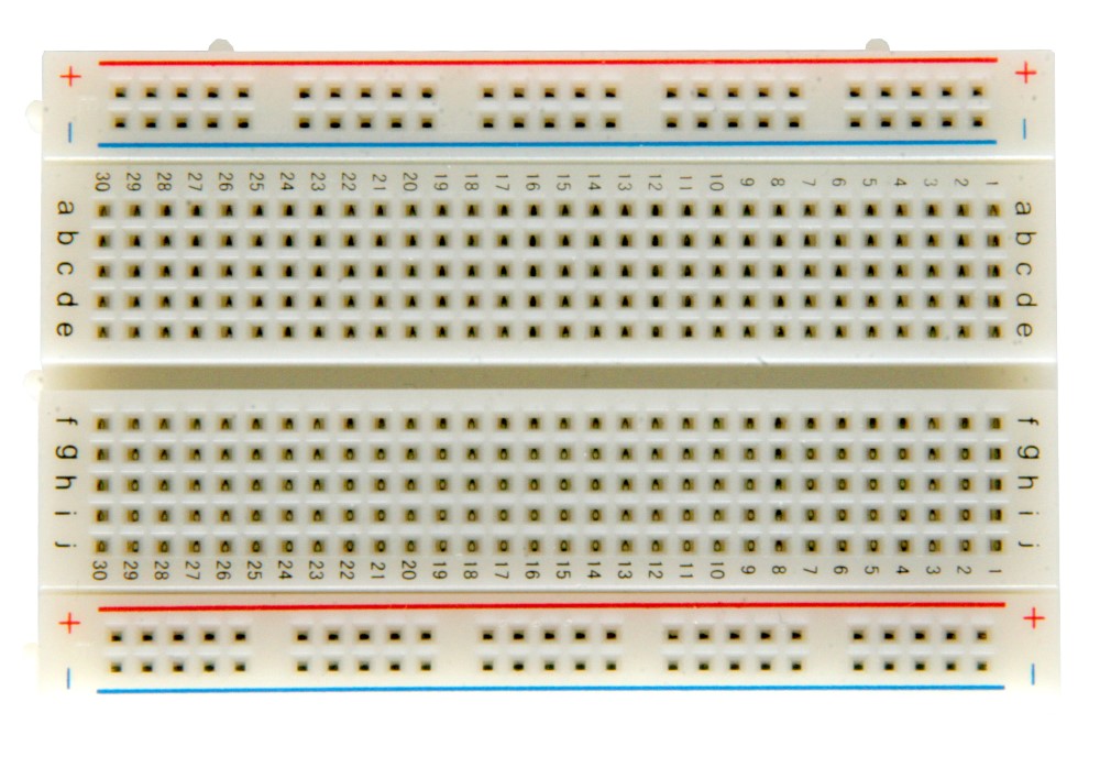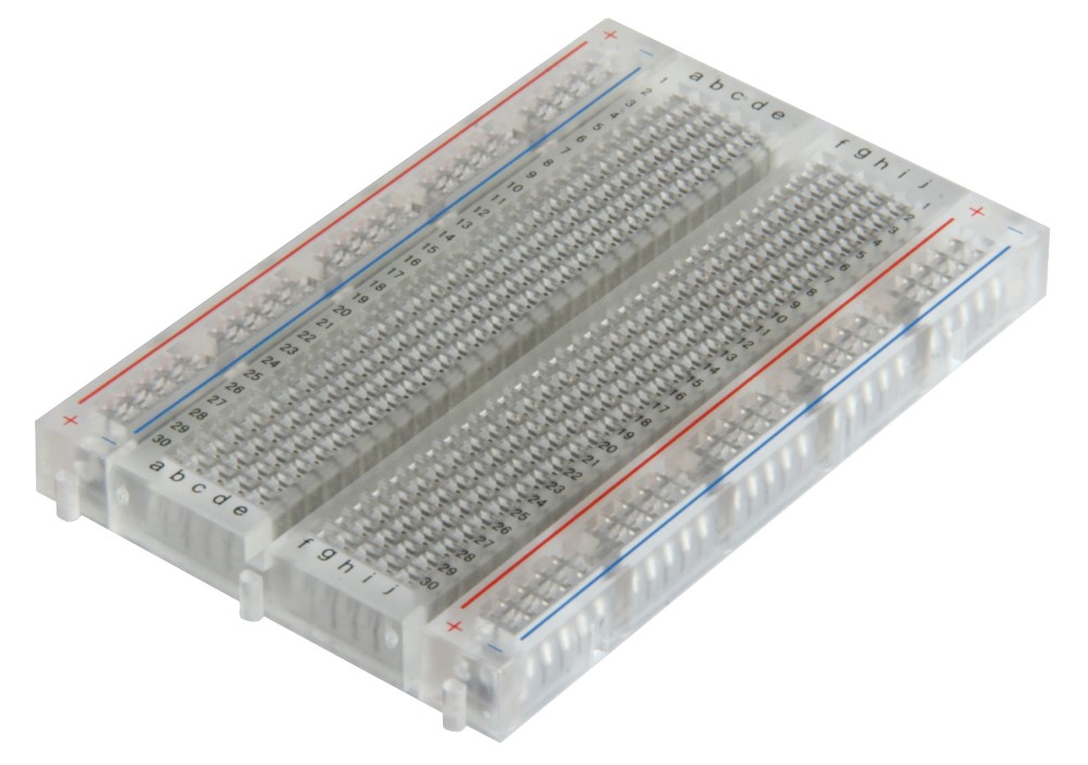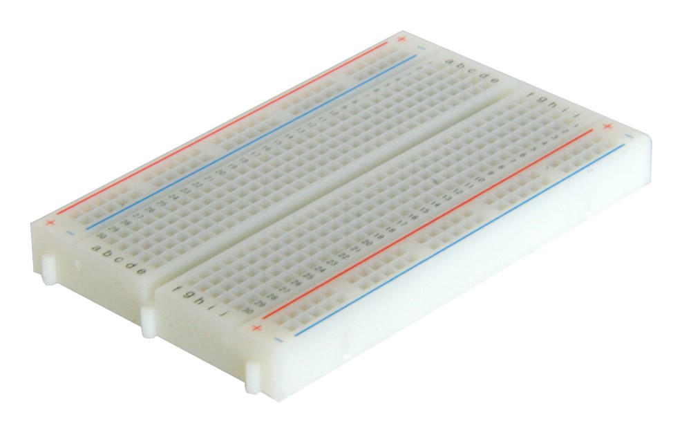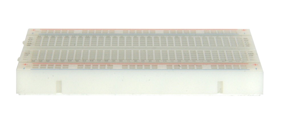 BreadBoard-400 is a solderless (plug-in) breadboard with 400 connection tie-points (i.e. 400 wire insertion holes). It has 4 power rails. Solderless breadboards are great for building and testing new circuits because parts can be easily inserted and removed. They are completely re-usable. The BB400 has a 300 tie-point IC-circuit area plus four 25 tie-point power rails. The housing is made of white ABS plastic, with a printed legend giving numbers and letters for columns and rows. The internal contacts are phosphor bronze with a plated nickel finish. A peelable adhesive tape backing is provided for attaching it to a surface. BPS BreadBoards are Lead-Free and RoHS Compliant. Finished projects can be moved to a SB400 or SB404 Solderable PC BreadBoard to make them permanent.