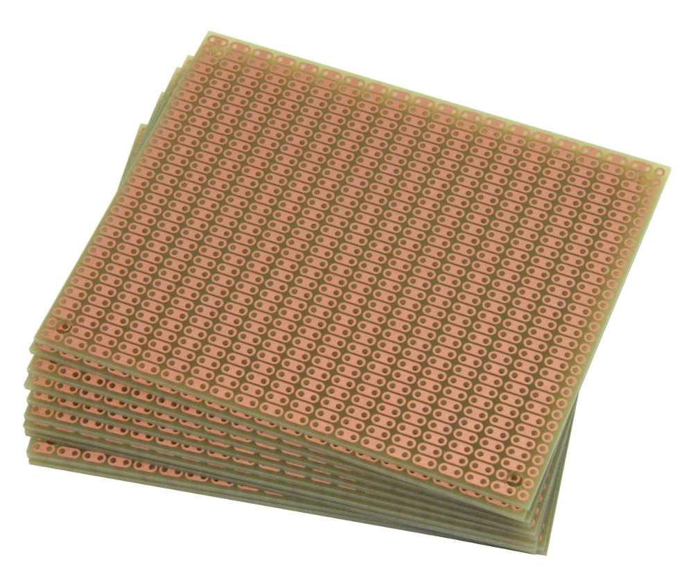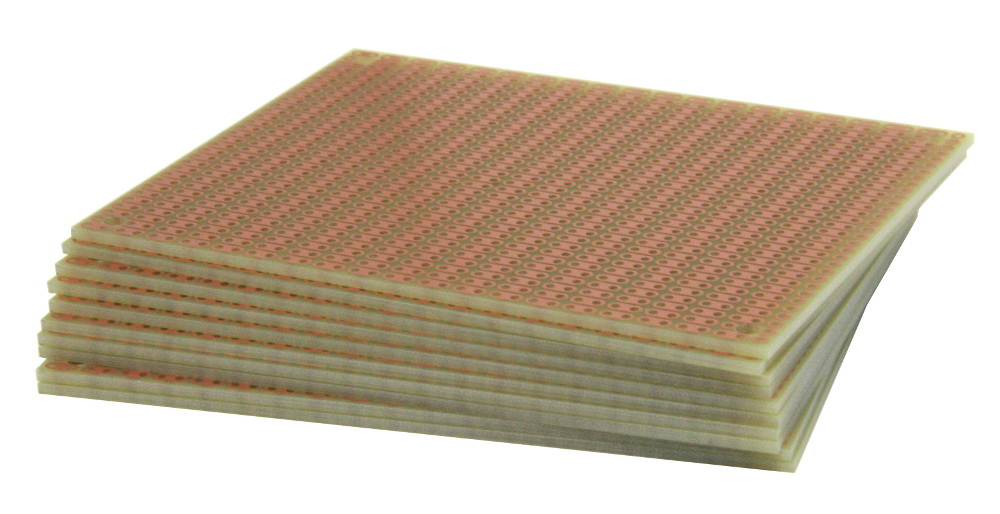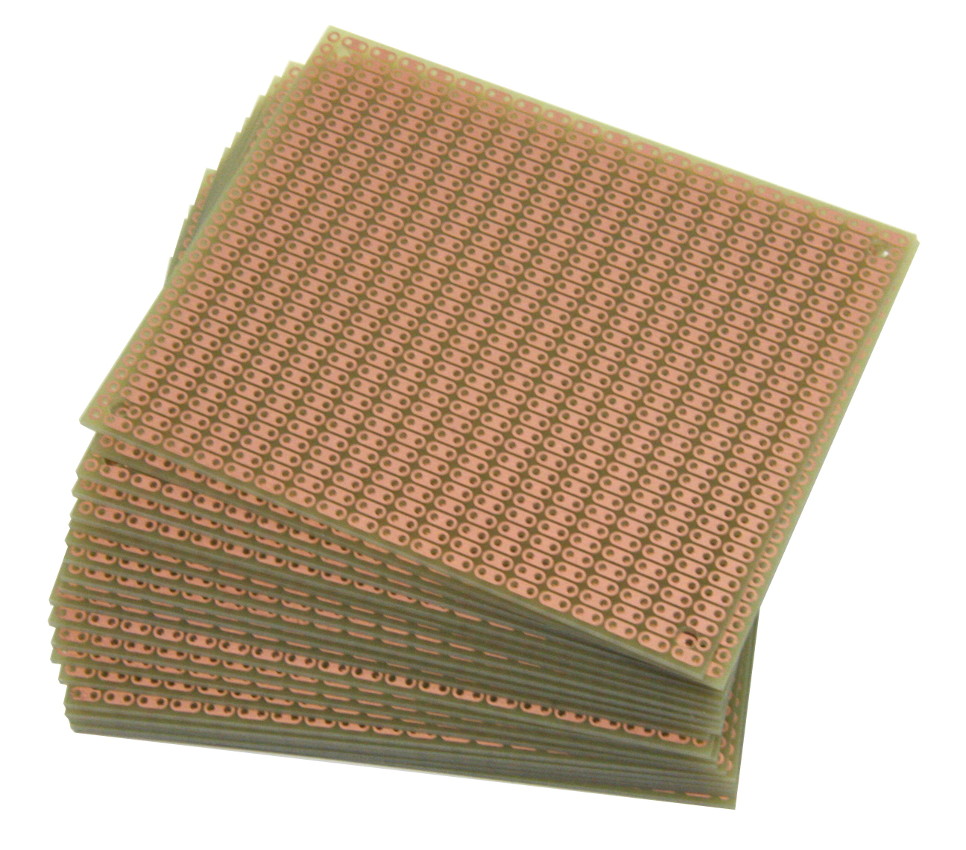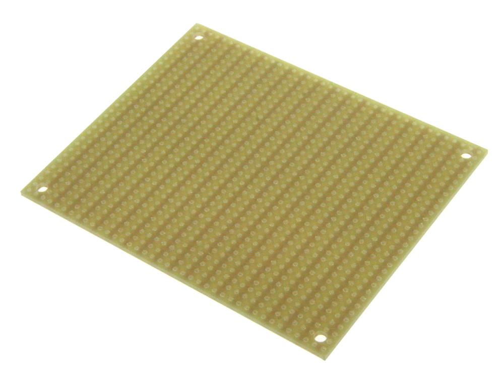 - 31 x 39 holes, 0.037" holes are drilled on 0.1" (2.54mm) centers. Four 0.125” mounting holes.
