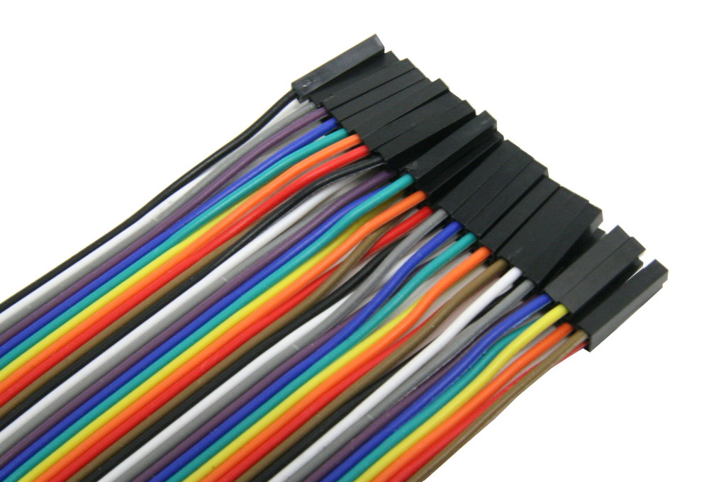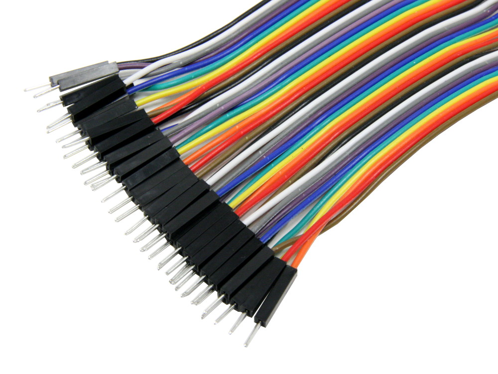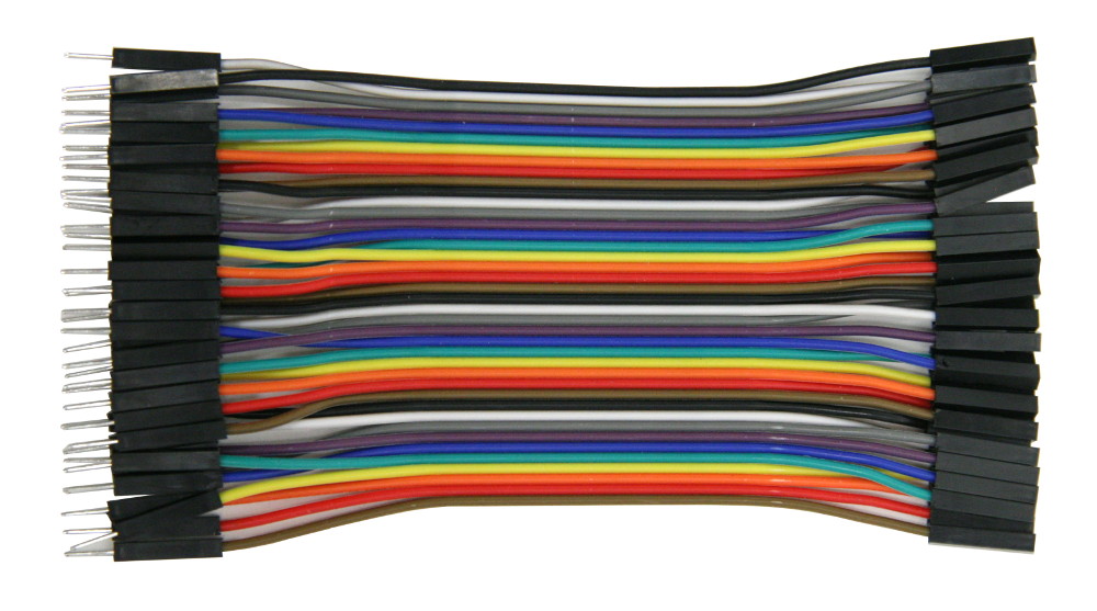 - Multi-color ribbon of 40 wires with male-to-female connectors in 10cm length.